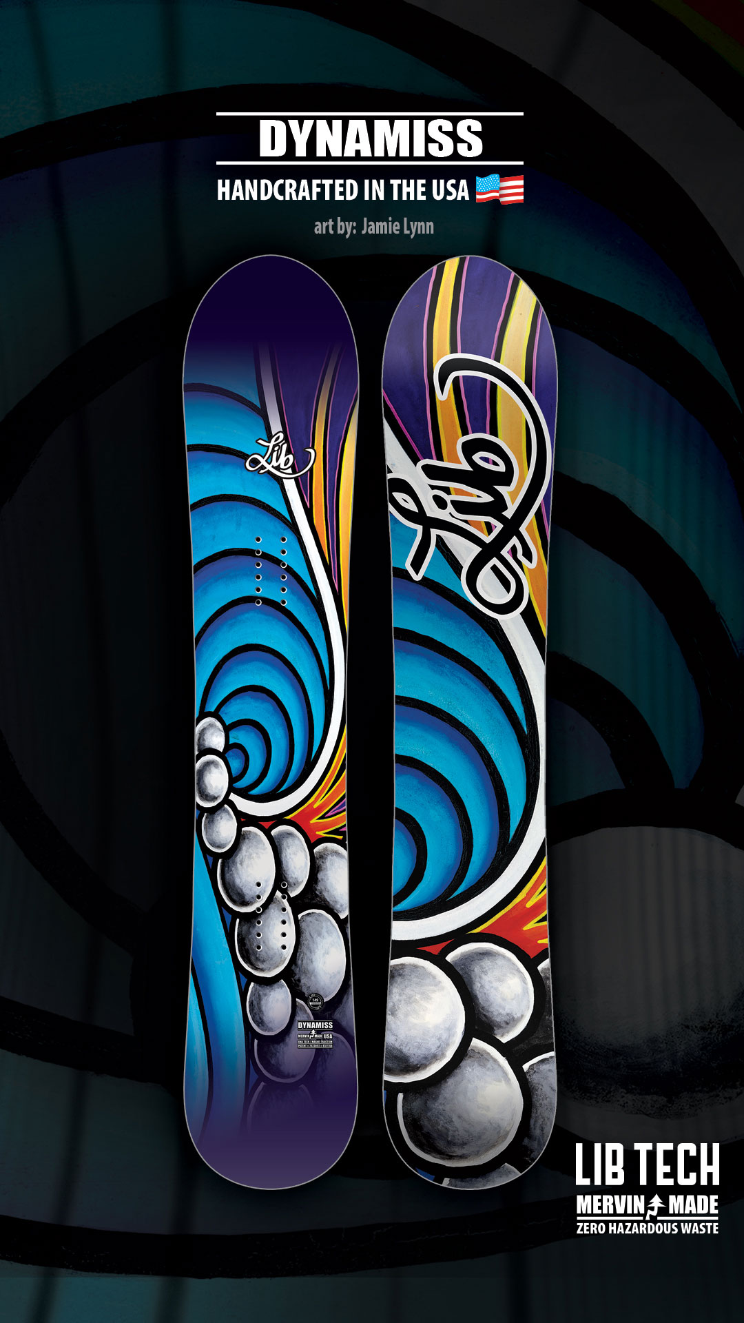 Jamie Lynn is a global legend to an entire generation of snowboarders. But to us he is even more than a legend...he's the creative foundation of the Lib Tech brand. Jamie's legacy of power snowboarding and free style works of art carry through his collection and out into our company's culture as an umbrella of inspiration for riders, artists and crafters alike. Today Jamie continues thriving, ripping and creating at a high level. His current collection of dream boards is his best ever with shape, flex and art offerings for old school chargers (JL 96), resort rulers (JL and Dynamiss), powder fiends (Short Wide), men, women and children (Banana Blaster)! This season sees new life for this proud new poppa and new energy for his Lib Tech collection!